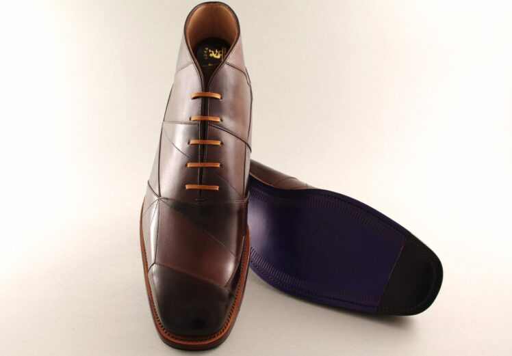 なかなか目に触れることのない靴裏を江戸紫色に染め上げたところにもこだわりを感じます。断裁した後にパズルのように設計図をつくりながら組み合わせていく必要があり、通常の10倍ほどの手間がかかるため月に約20足のみの製造で直営4店舗でしか購入することはできません。