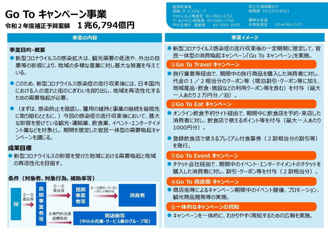 こうした中、政府は新型コロナウイルス収束後の需要喚起策として「Go Toキャンペーン事業」を計画。